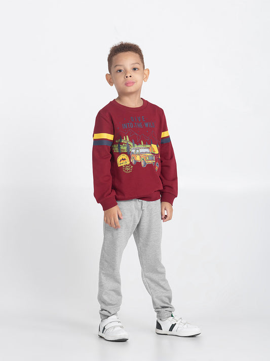Boys Red Long Sleeve T-shirt with Cool Beaver Print