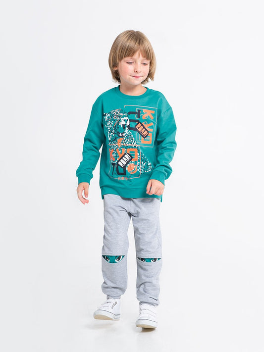 Boys Green Sweatshirt with Kung Fu Tiger Print