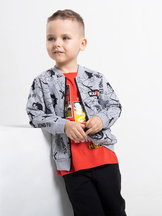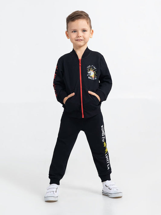 Boys Dark Blue Hoodie with Kung Fu Master Print