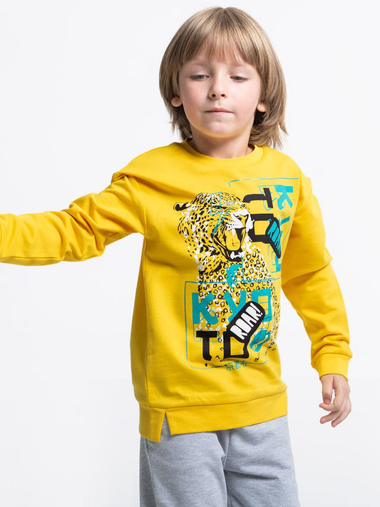 Boys Yellow Sweatshirt with Kung Fu Tiger Print