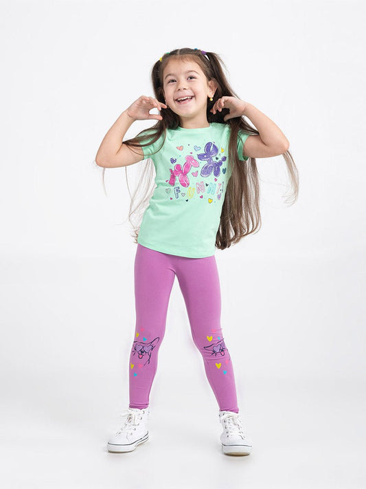 Girls Purple Leggings with Puppy in Love Print