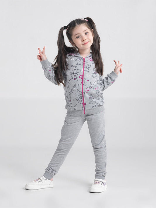 Girls Grey Leggings with Cute Puppies Print