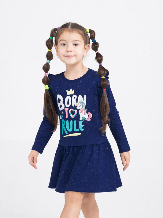 Girls Dark Blue Dress with Born to Rule Print