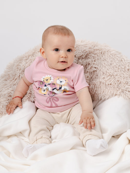 Short Sleeve T-Shirt with (Lion Bouquet) Graphic - Pink